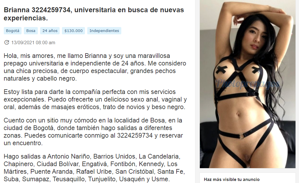 Colegas buenos días , yo sé que ya muchos son experimentados, pero igual estamos para apoyarnos y prevenir . Viendo esa página de photoprepagos ví una nueva escort y me puse contento y dije por fin una escort nueva , al escribirle al final pide 50 por ciento de adelanto , obviamente es estafa , esto es especialmente para los nuevos .