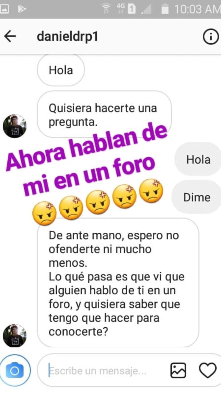 Gente, por favor sean un poco prudentes, acabo de notar que ella hoy puso en su estado de Instagram la conversación por DM que tuvo con alguien, en la cual le dicen que de ella están hablando en un foro y que cómo hace para conocerla. Ya varias que han mencionado en estos foros han hecho lo mismo o se han quejado.