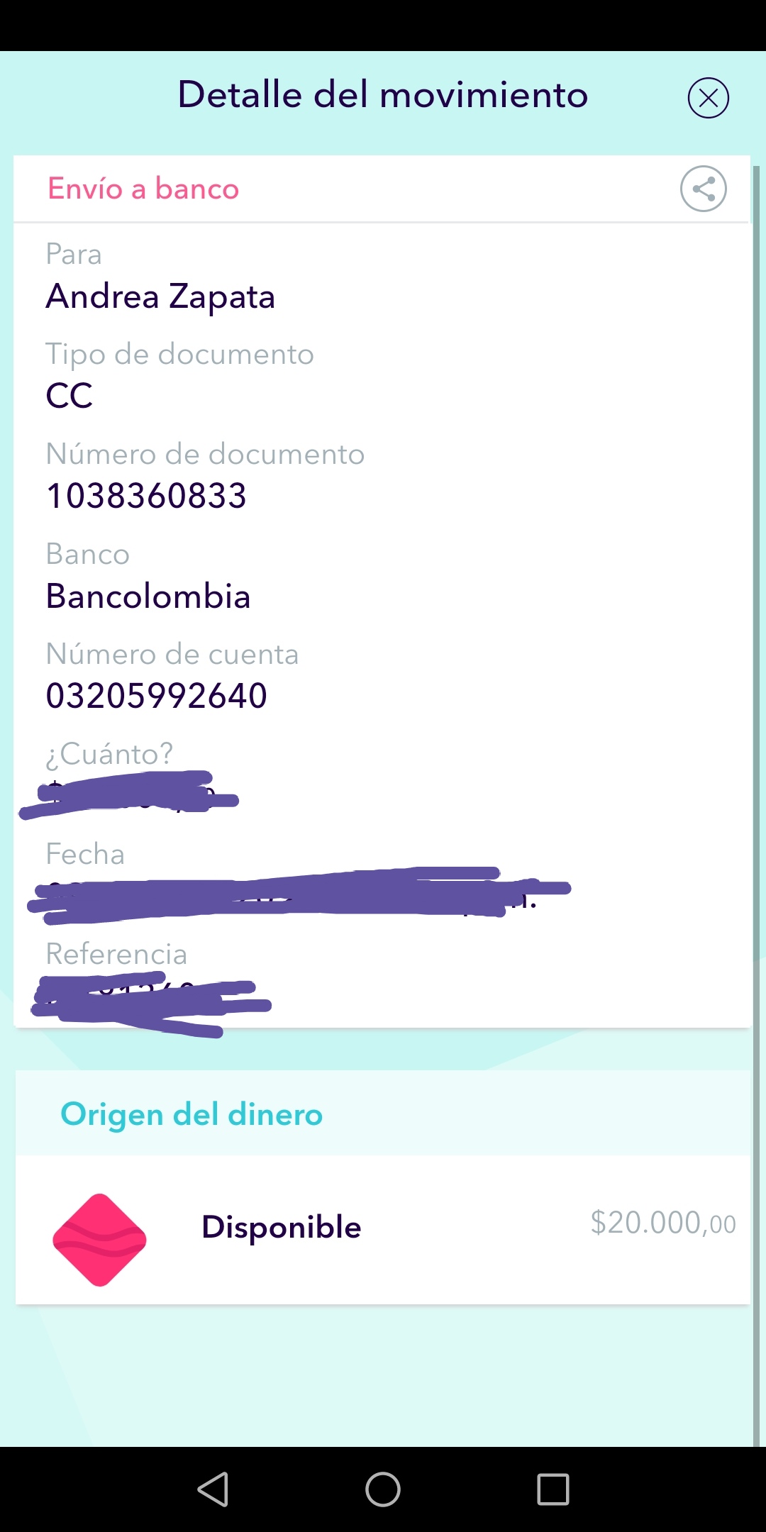 Hago la transferencia a esta cuenta
