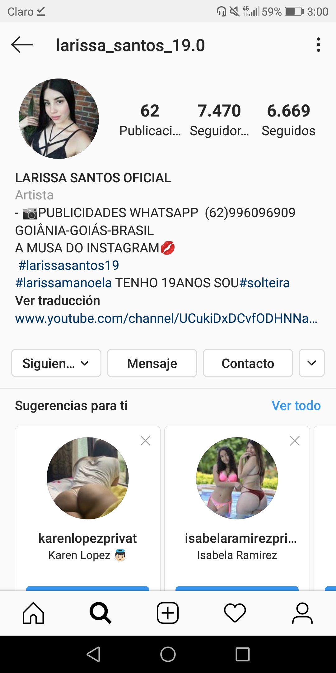 Peor yo indague, y la chica no es colombiana, es brasileña se llama laurissa Santos, dejó el ing oficial