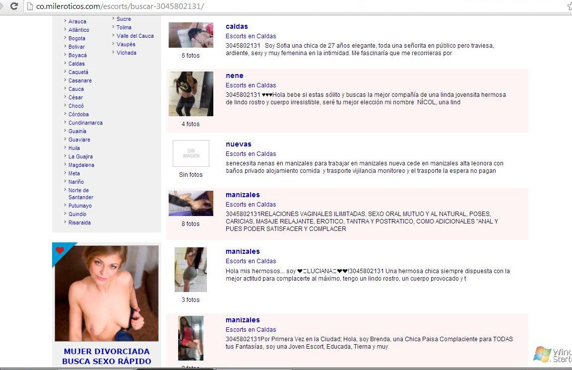 En mileroticos hay un estafador que publica constantemente anuncios falsos, se hace pasar como dueño de una agencia, solicita consignaciones de dinero y no tiene a ninguna chica. Estos son los números con los que a publicado diferentes anuncios falsos durante varios meses: