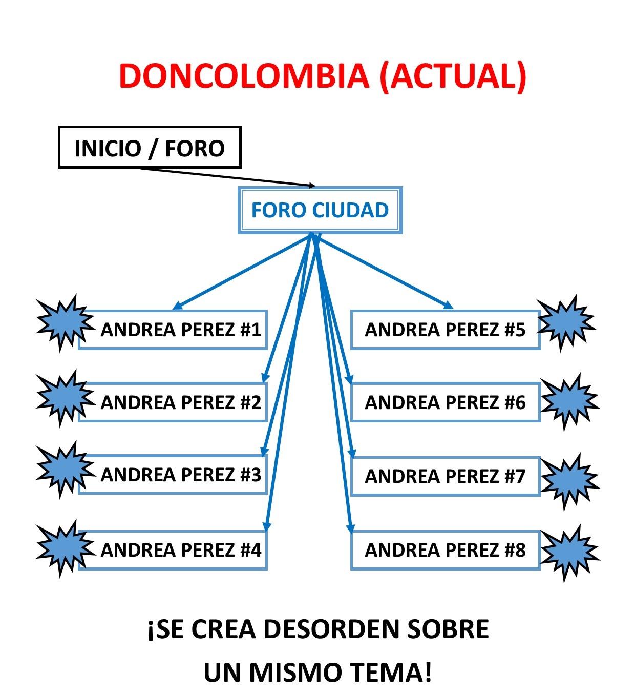 Luego de adelantar bastante la sección mapas, y debido a que se ha presentado la problemática en los últimos meses sobre la creación de múltiples temas de conversación sobre una misma dama o lugar, hemos decidido hacer algo para solucionarlo o al menos mejorarlo. Por favor ver la gráfica sobre la situación.