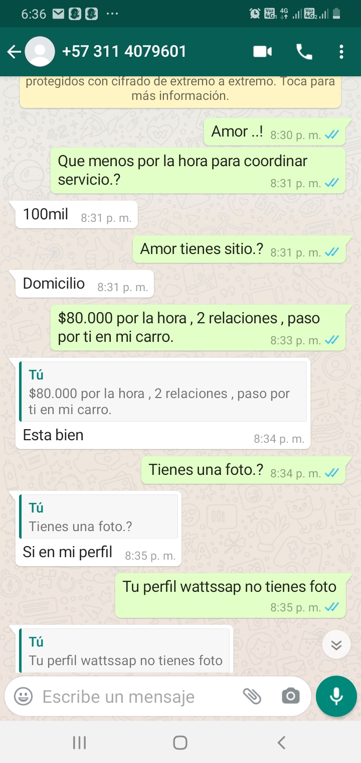 Los que me conocen saben que yo no repito con putas, y además no les pago más de la tarifa actual $80k la hora 2 relaciones, de pronto el parcero le gusta pagarles bien.