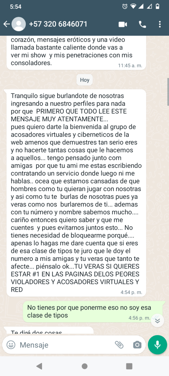 Amiguito utilice un putinumero es decir otra linea nunca exponga la suya , estos chantajes lo hacen menores de edad con la complacencia de manes desde la cárcel ...