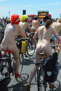 Ciclonudista (World Naked Bike Ride), Brighton, Reino Unido,