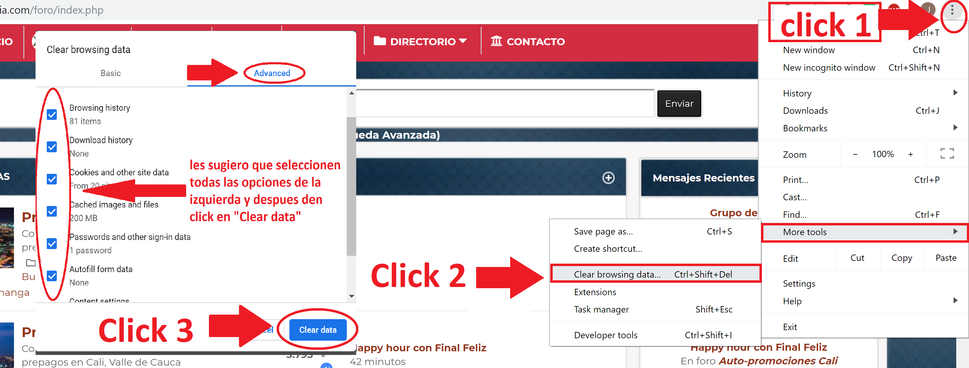 [align=justify][size=small]En conclusión, la versión de celular es muy similar a la de computador. Sin embargo, es importante mencionar que el nuevo diseño (celular y computador) aún está en proceso de implementación y en consecuencia se están mejorando y agregando cosas. Un fallo que se había detectado es que era difícil identificar los temas sin revisar (o con comentarios nuevos) ya que algunos temas permanecían siempre con negrilla. Este problema ya ha sido solucionado, pero es posible que algunos de ustedes sigan teniéndolo. Si es así, lo que deben hacer es borrar el historial y las cookies de DonColombia. Si por alguna razón no saben cómo hacerlo, en la siguiente imágen se los explico:[/size][/align]