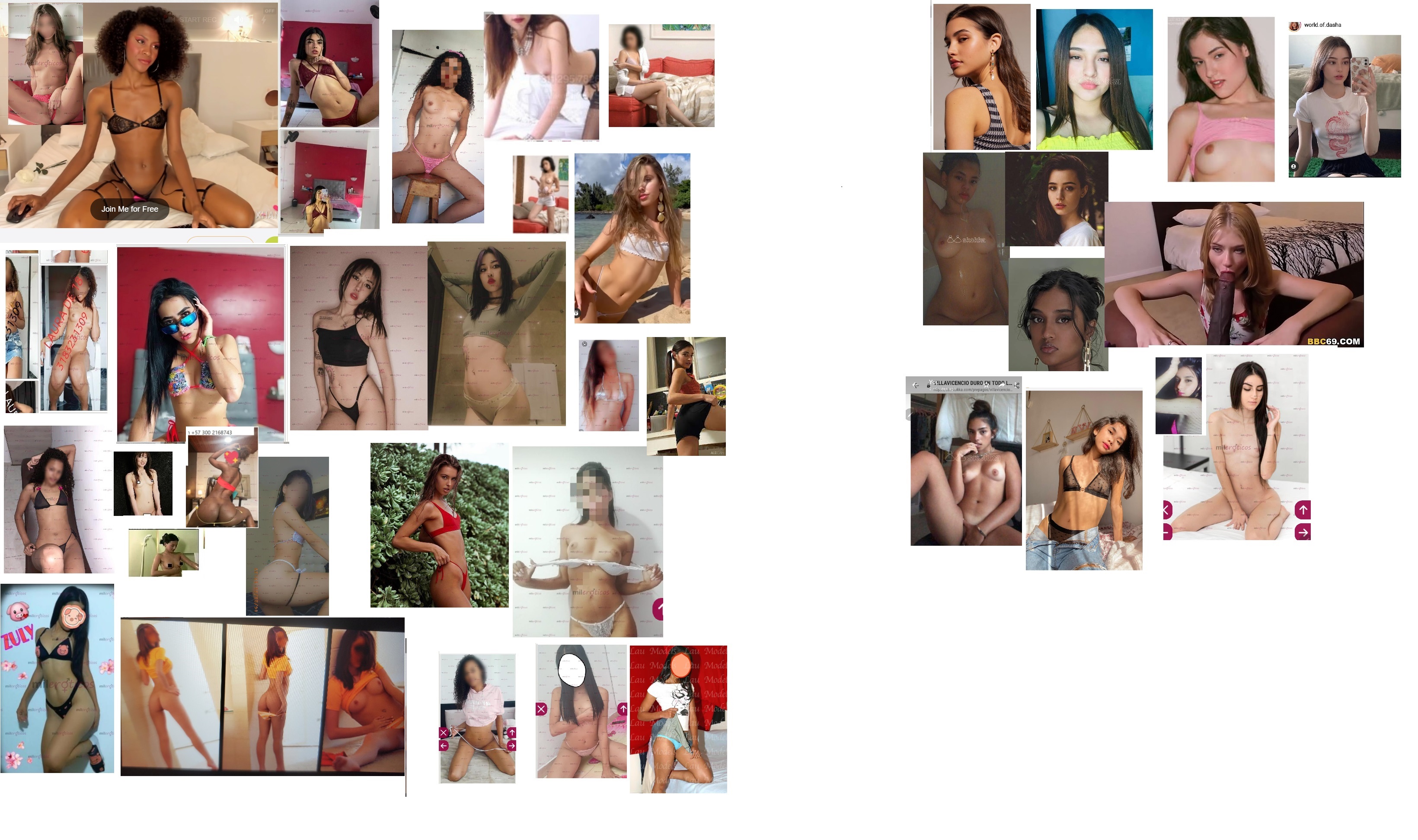 He incluido un collage de imágenes para mostrar lo que estoy buscando. A la izquierda están los estilos de cuerpos que deseo. Senos muy delgados, pequeños, a taza o b taza /tamaño a o b (a cup b cup). . A la derecha están el tipo de caras, joven y bella, cara de bebé.