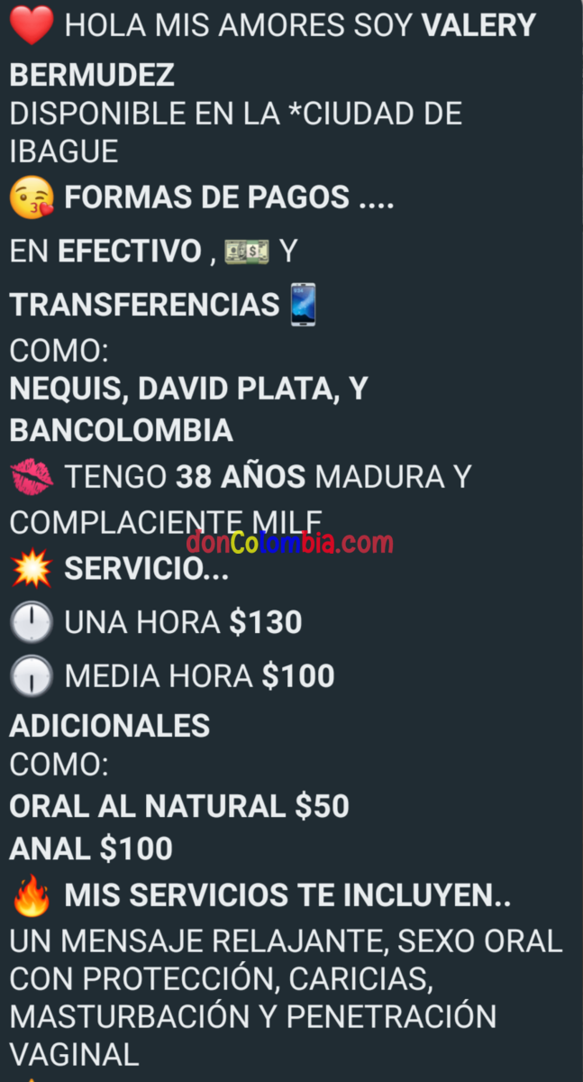 Está dama hace tiempo la habia visto y la verdad le tenía ganas aunque me pareció muy bueno para ser verdad ( Estaba en lo cierto), miré que llegó a la ciudad, consulte en DonColombia, mire la pregunta de otro usuario, pero no reseña, entonces decidí arriesgarme esta semana a catar la, le escribí desde mileroticos y me envio la plantilla (la adjunto), las fotos me llevaron a agendar, llegué al lugar, estando afuera(No me gusta esperar en la sala) le escribo que ya llegué y me dice que entre y el número de la habitación(212), entre, la llamaron y dijo que esperara unos minutos, pasado el tiempo me indican que puedo subir y que debo pagar 10.000 pesos, la habitación está en el segundo piso de frente a la escalera, golpeó con la expectativa de que me abriera esa mujer despampanante de las fotos.