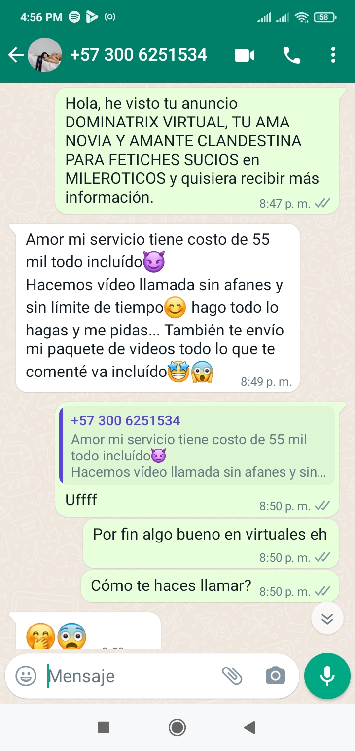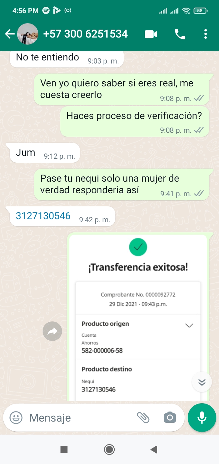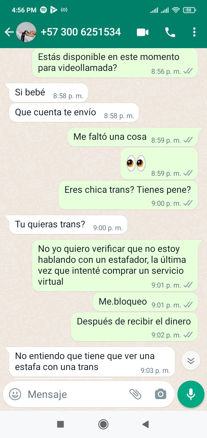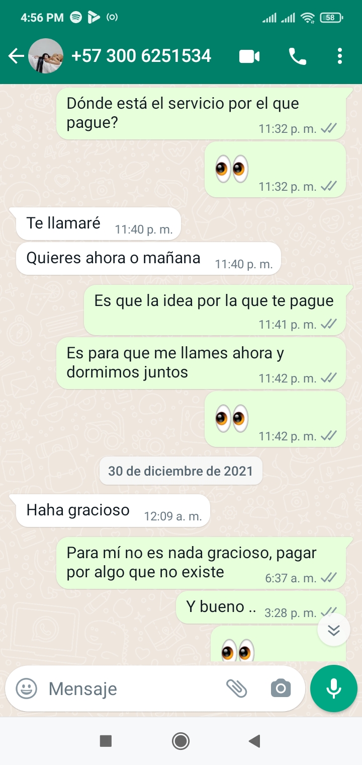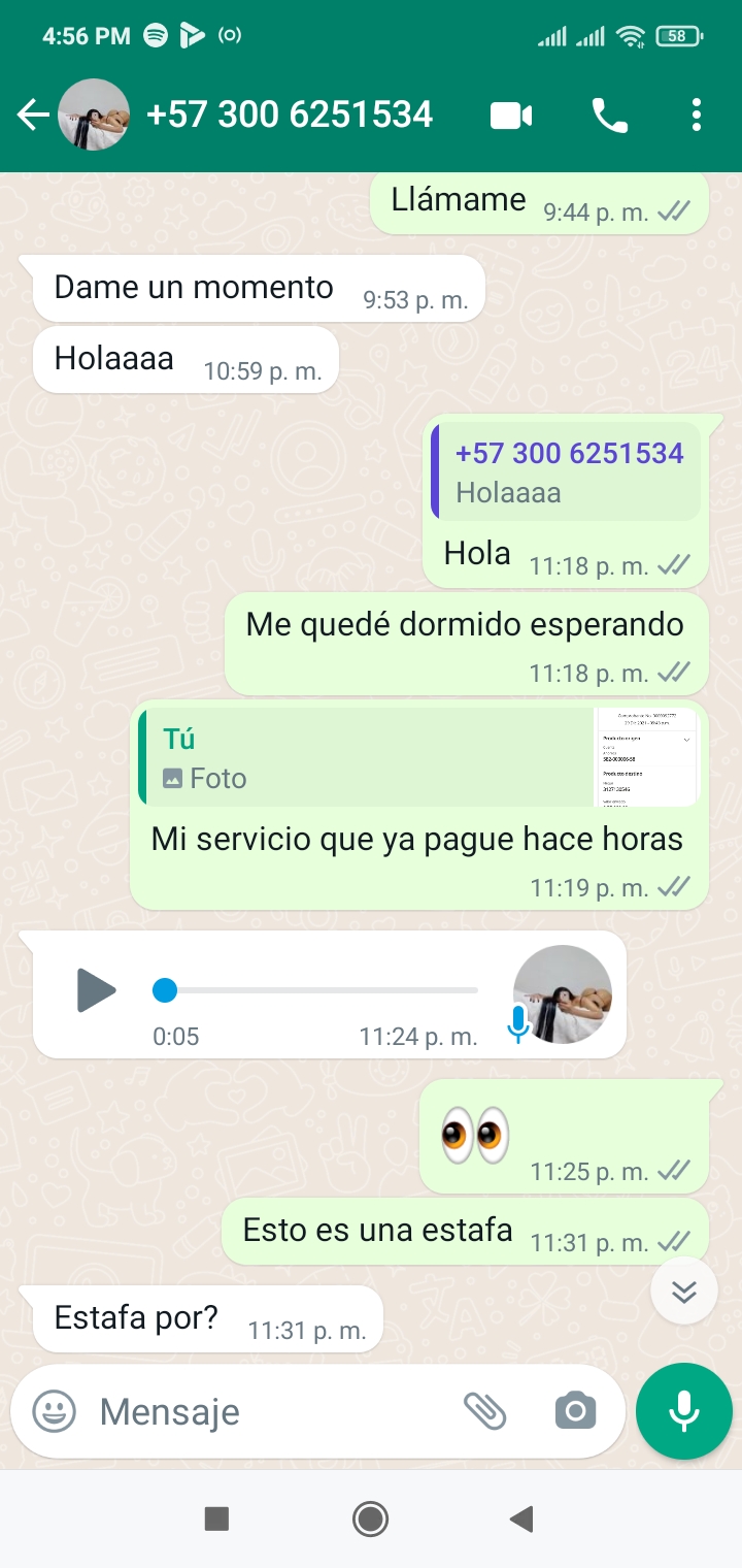 Quise probar sus servicios virtuales y me lleve la sorpresa que era una estafa, anexo conversación WhatsApp.
