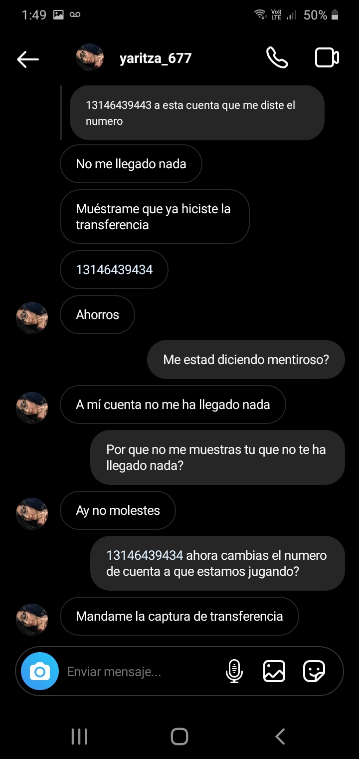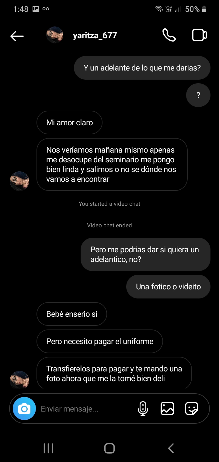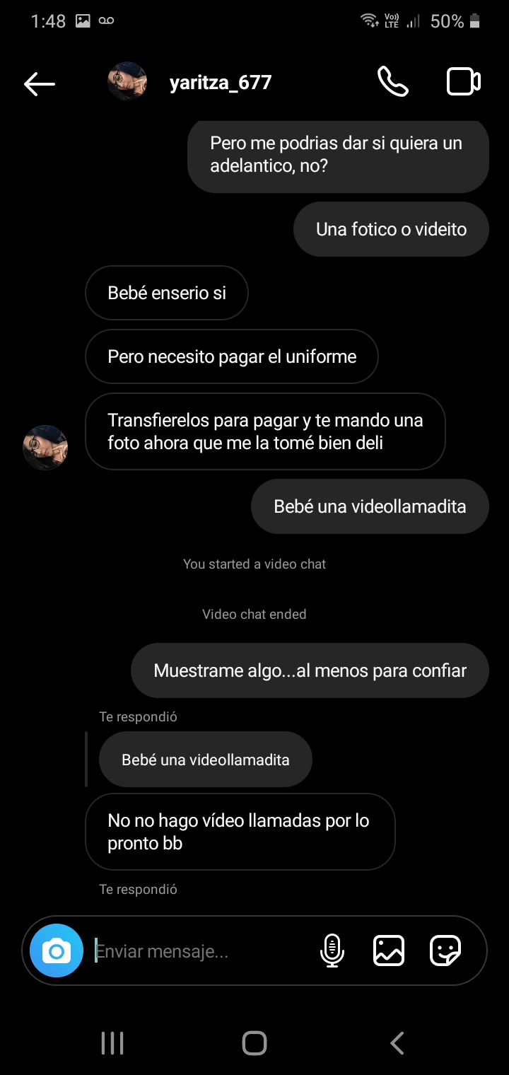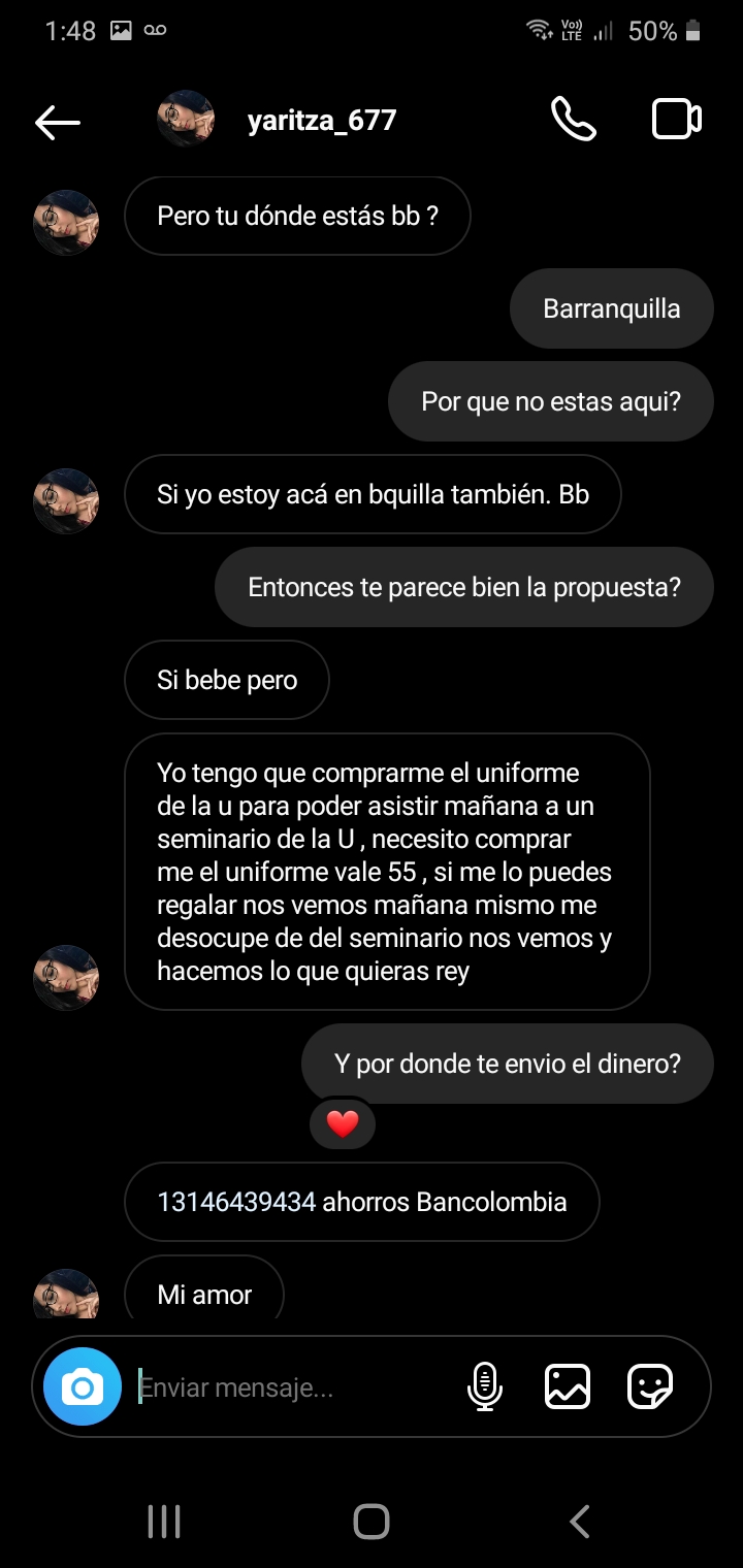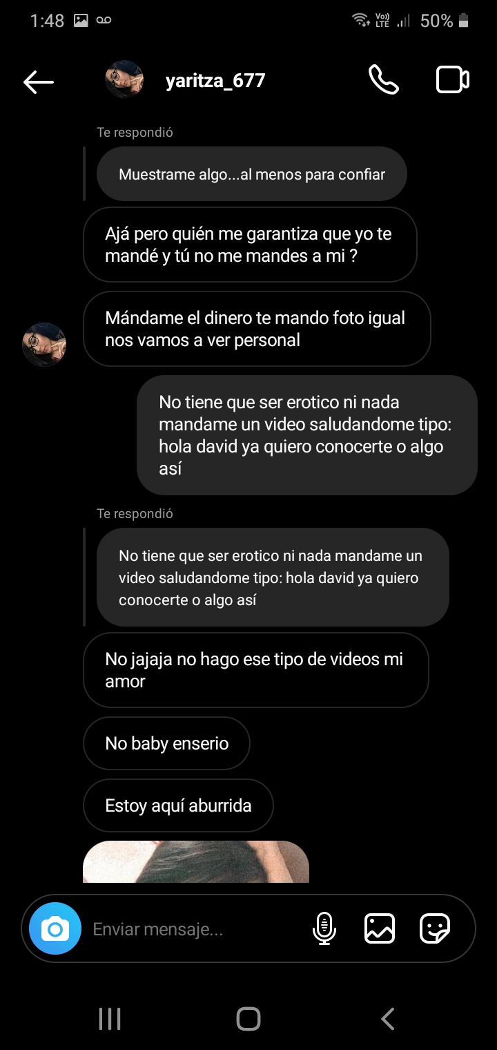 Buenas tardes, yo sé que no escribo mucho por aquí pero lo que me pasó da para reseña, lo que me sucedió fue lo siguiente: Por querer salir de la rutina me puse en la tarea de buscar "caseritas" por tinder y ver como me iba tal resulta y acontence que la susodicha me dio like y yo le di like e hicimos match pero le escribí por tinder y nada que me respondia asi que fuí al instagram que estaba en su perfil se me hizo medio fake pero ajá queria intentar para ver que pasaba, le escribi por DM y le hice una propuesta, me respondió que estaba "dispuesta" y toda la cosa pero cuando ya me hizo una petición se cayó estantería y ya uno tiene que ser muy mk para no darse cuenta que es una estafa y le seguí el juego para ver hasta donde llegaba y el/la hijue*** se dió cuenta y no respondió mas Jajajajajaja, HP eso me bajó la moral pero voy a seguir en tinder porque no me puede quedar grande este desafio. PD:Les pido un favor si entran a Instagram me pueden hacer el favor de denunciar esa cuenta por estafadora porque siempre habrá el Mk que va caer en esa. En las fotos adjuntadas esta el usuario y así mismo aparece en tinder ya saben si les aparece ese usuario reportenlo.