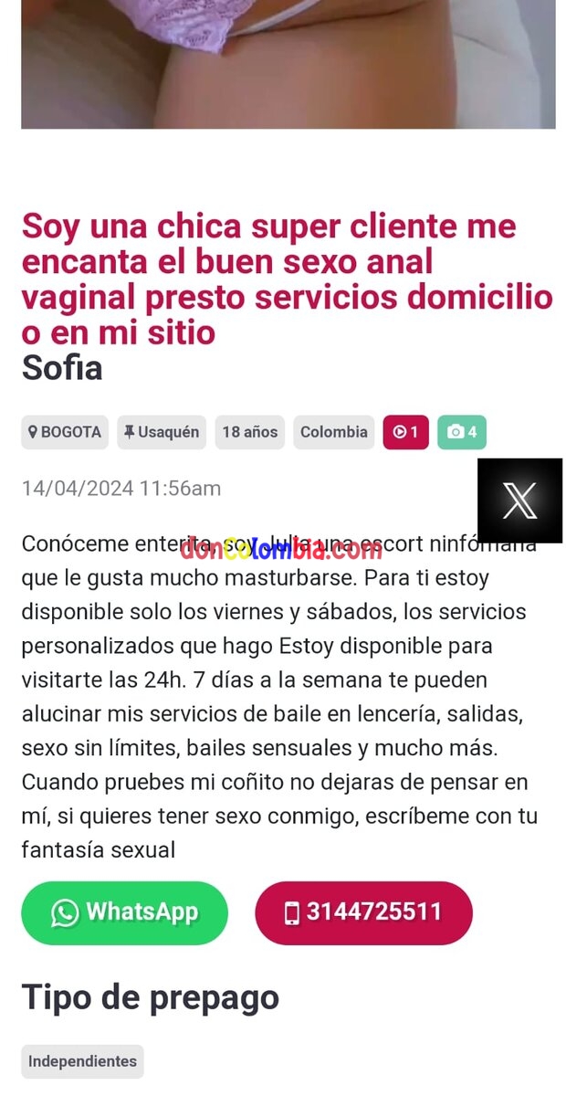 La verdadera dueña de esas fotos es la prepago (+18) del Instagram @Sofiasuarez666