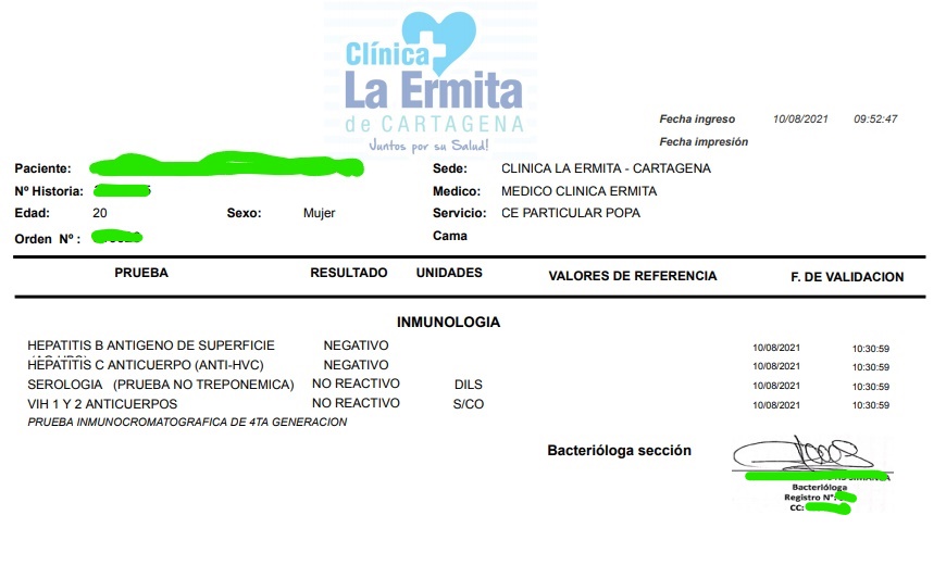 Saludos camaradas. Ashley me hizo llegar sus examenes médicos al día. Están los más importantes pues se encuentra el de vih, hay otros que le llegan en unos días. Sin embargo ella lo hace para que tengan confianza. Se quedará hasta aproximadamente el domingo o lunes en Barranquilla en la casa de la autonoma. Esperen que cuelgue link. Si tienen el numero le escriben