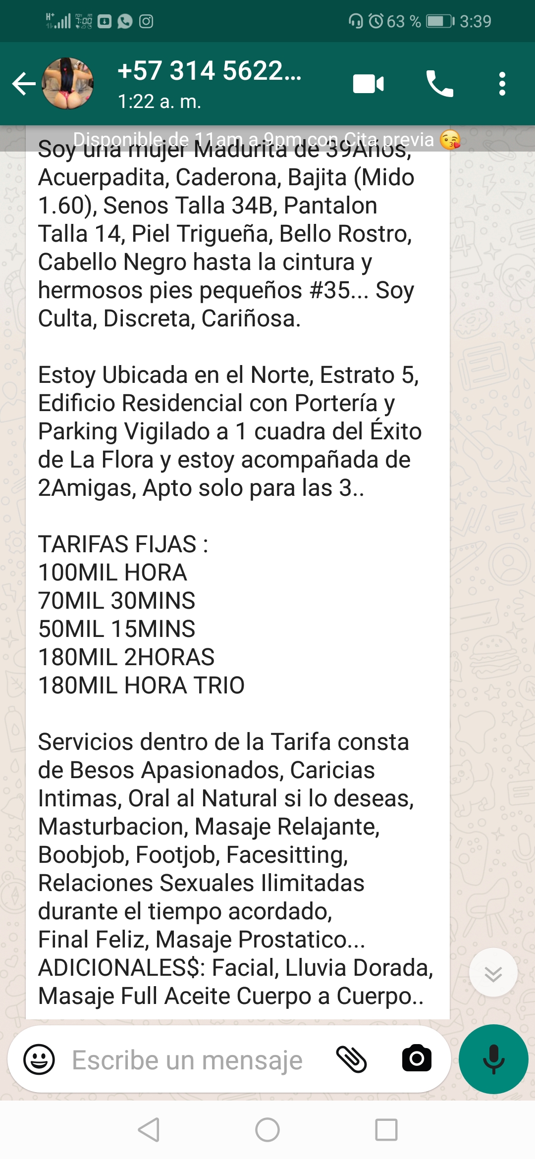 Según tengo entendido en ese apartamento atienden 3 chicas incluida Natalia y esta me llamó mucho la atención por que es una madura de 39 años (según dice el anuncio) bajita,india pelinegra y caderona, este tipo de mujeres me enloquecen y quería probarla pero ni modo.