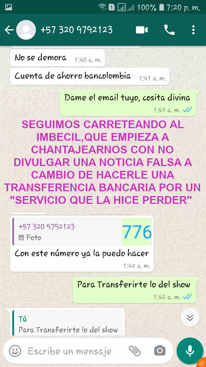 Les adjuntamos 20 imagenes que detallan la forma completa (el modus operandi) de los estafadores en Whatsapp que han aparecido masivamente en esta cuarentena. En general, los que realizan esto son personas sin oficio alguno, junto con la ayuda de un usuario pude averiguar personalmente que son indistintamente hombres o mujeres, usualmente jovenes, que compran 20, 30, 40 sim cards, las utilizan un par de semanas y las deshechan a la basura. Se publican como supuestas chicas webcam o escorts novatas, listas para realizar un show virtual directamente con la "victima". Al final del procedimiento, aparece el chantaje, y luego dejan sus datos bancarios verdaderos para hacer el pago.