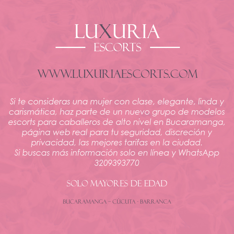 solo mujeres mayores de edad.. haz parte de un nuevo grupo de modelos para caballeros. website en actualización.. www.luxuriaescorts.com L y W ... 3209393770. info.. Bucaramanga, Cúcuta, y Barrancabermeja.