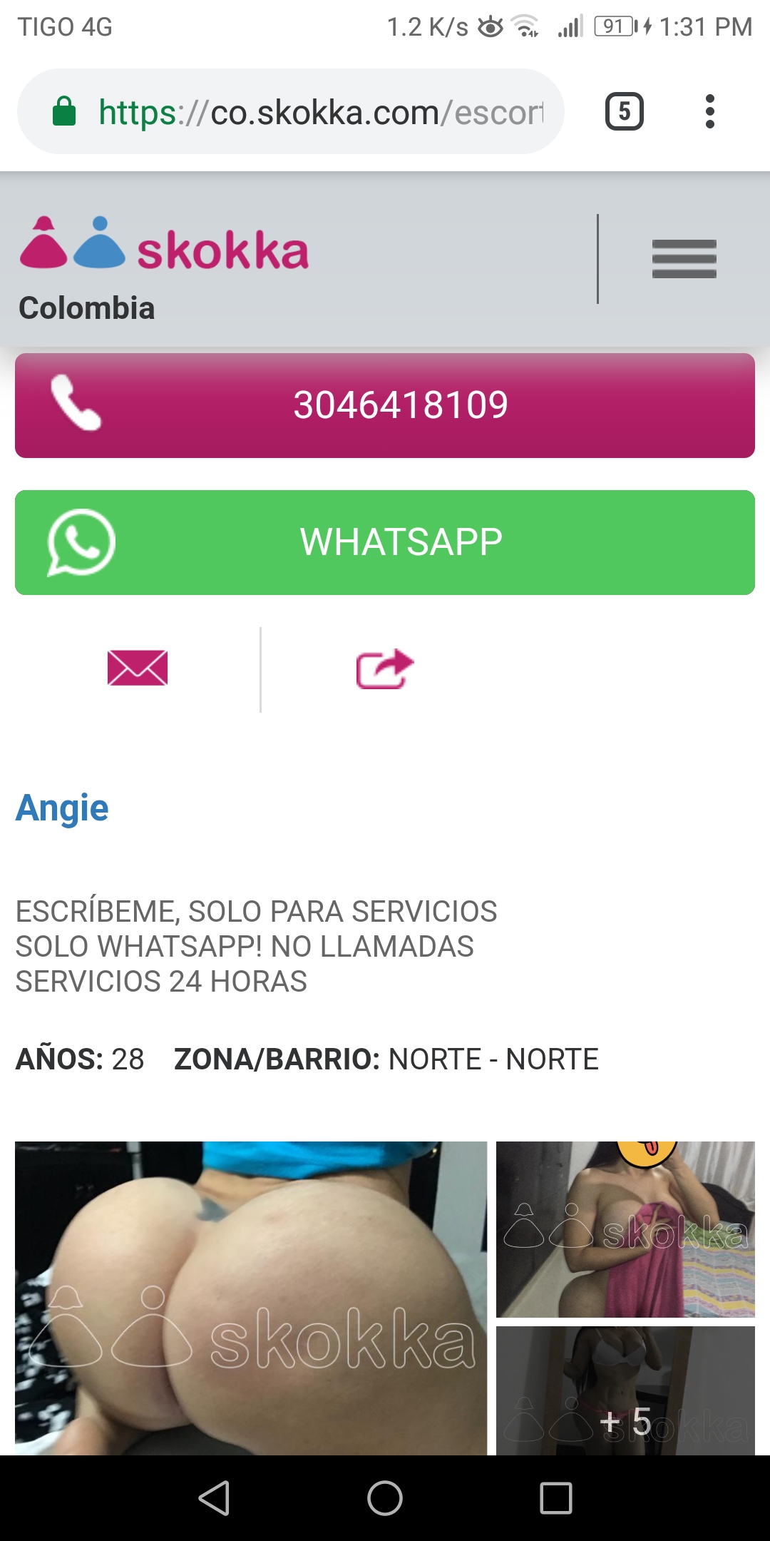Bueno, esos son los datos que poseo de esa mujer, le deben llover los clientes a diestra y siniestra, asi que es complicao el nivel de exposición al peligro. Si alguno sabe de su identificación que bote el dato.