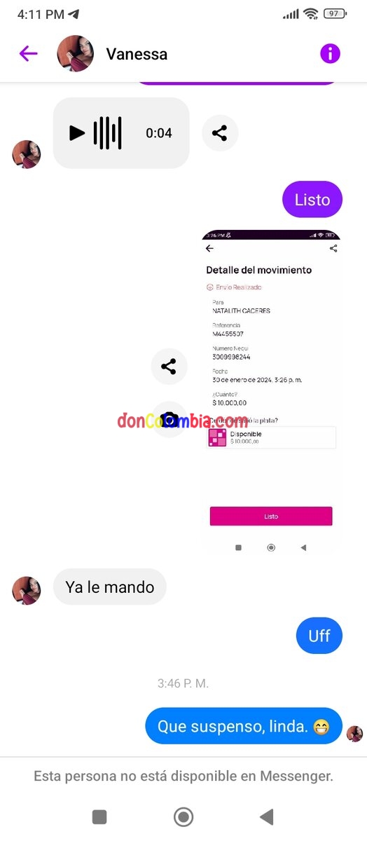 Regreso del retiro para denunciar a esta rata que aprovechándose de una arrechera que tuve estando retirado. Me tumbó, no una suma considerable -de hecho en todo momento tuve presente que posiblemente sería tirar una moneda al aire- pero seguramente otros incautos con mayor solvencia económica y sin tanta malicia podrían llegar a ser estafados. Mis disculpas si no se está permitido este tipo de denuncias. De ser así no tendré problema en que se me elimine el comentario. Saludos a todos.