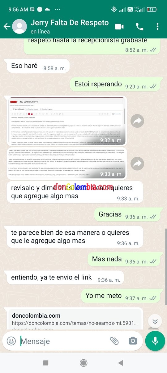 Por mi parte voy terminando, pero dejo la salvedad de que esto se puede presentar nuevamente y es algo realmente bajo de nuestra parte, no seamos miserables y preguntemos si es que lo queremos, no como yo, que puse a correr la grabacion sin ofrecer ningun adicional y peor, sin ella saber que lo estaba haciendo