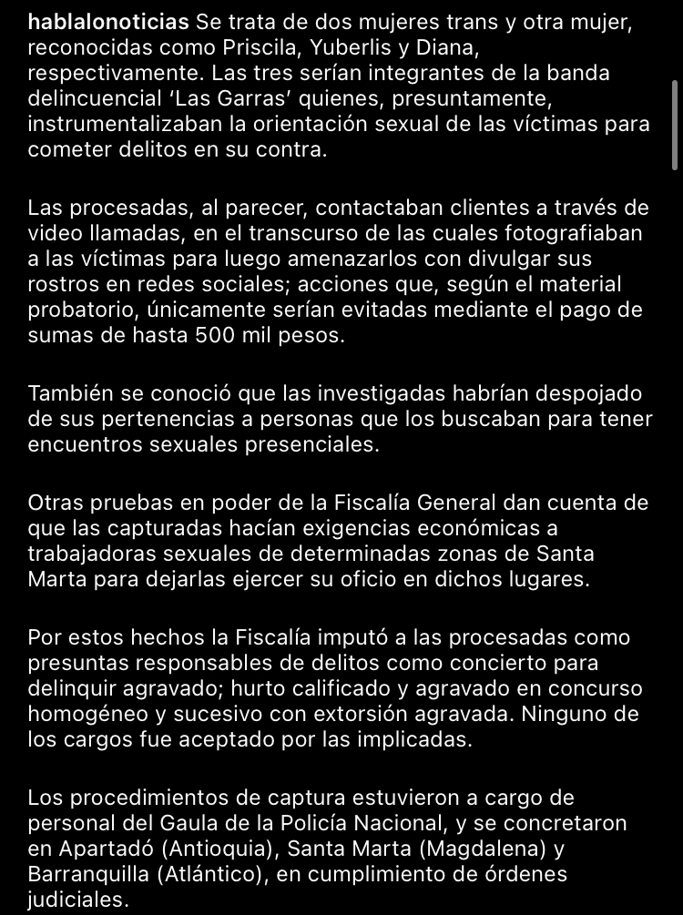 Se que la página no es de noticias pero me pareció prudente subir esta publicación, primero porque vi una vez a alguien del grupo hablando que lo estaban extorcionando con una foto que le tomaron por medio de una videollamada que por error contestó, segundo para que estén atentos a las operaciones de los extorcionistas y por último que denuncien porque la ley tarda pero llega.