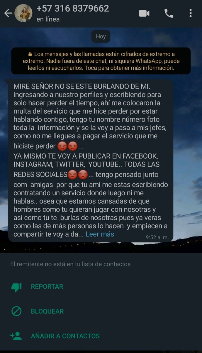 Caballeros, soy nuevo usuario pero llevo viendo el foro por mucho tiempo, averiguando servicios contacte a una SS y pregunté info como siempre, al otro día me llega el mensaje al chat. Les advierto para que no tengan problemas y podamos hacer algo en contra de las Ss que hacen este tipo de cosas.