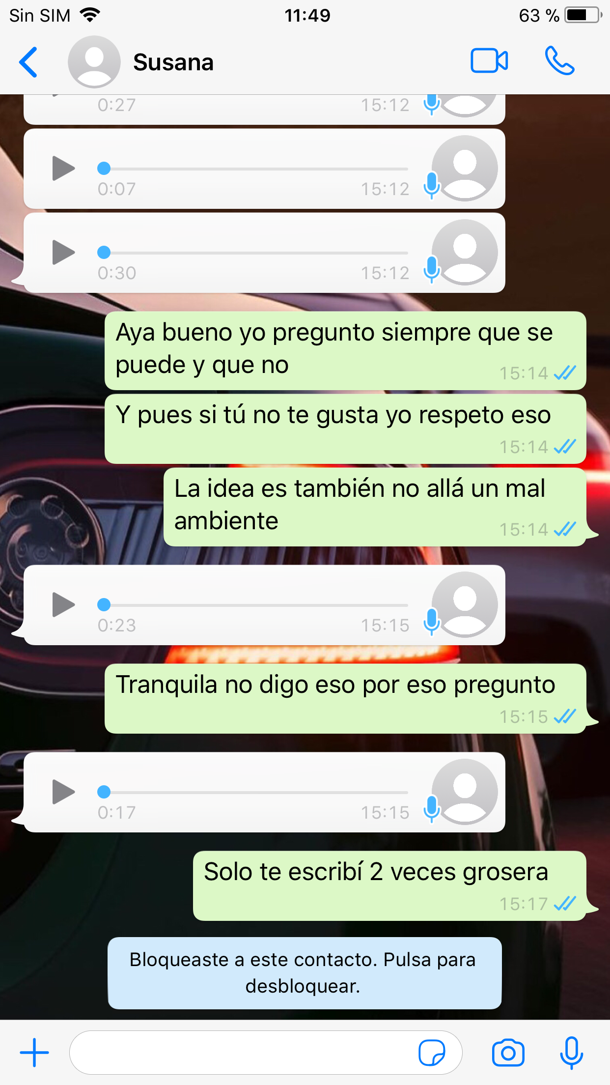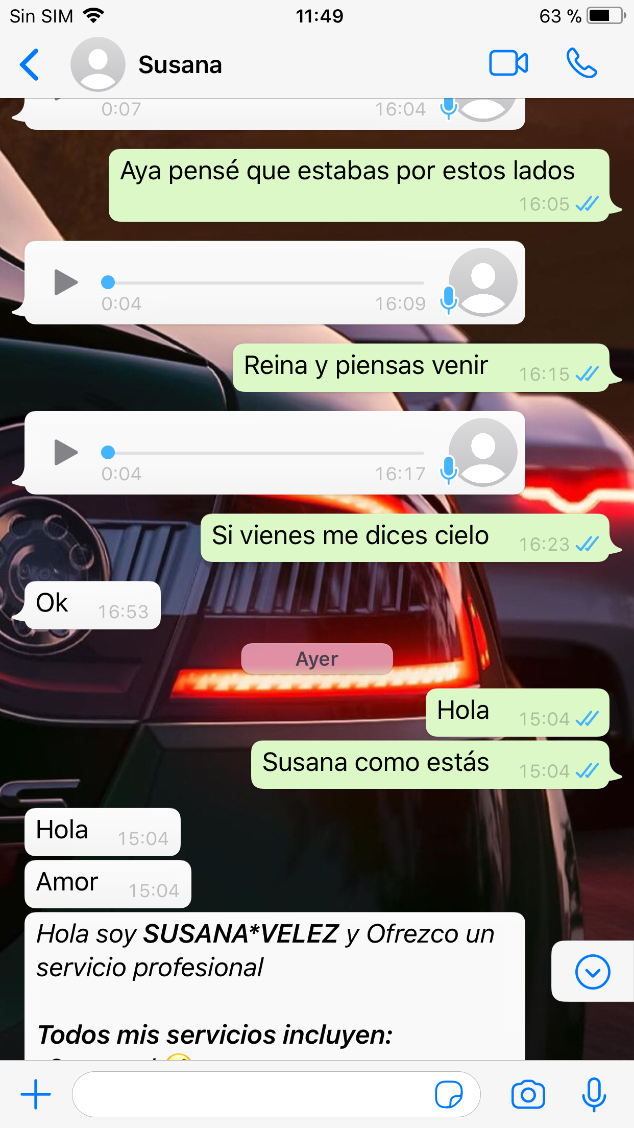 Yo publico a Susana, me mostro todas las conversaciones, usted la estaba acosando desde el mes de abril. Sin embargo ayer le escribiste te explico el servicio como lo realiza::::