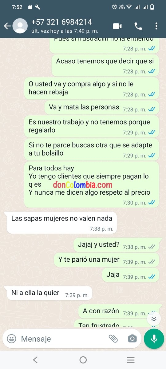 Pero hay personas que uno les tiene que aceptar el valor que le proponen a uno por WhatsApp .