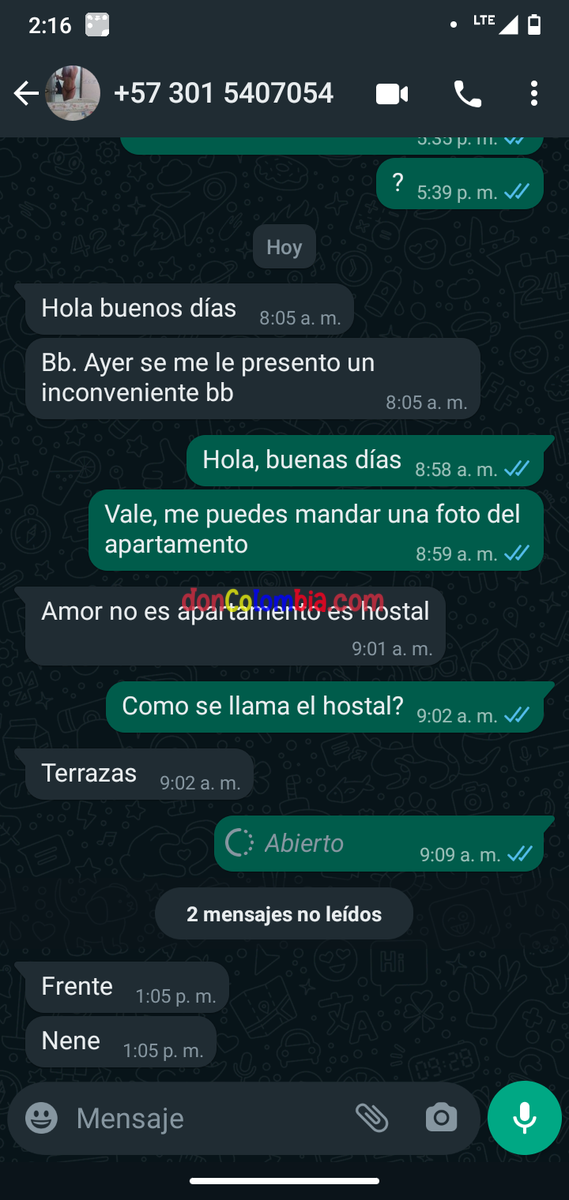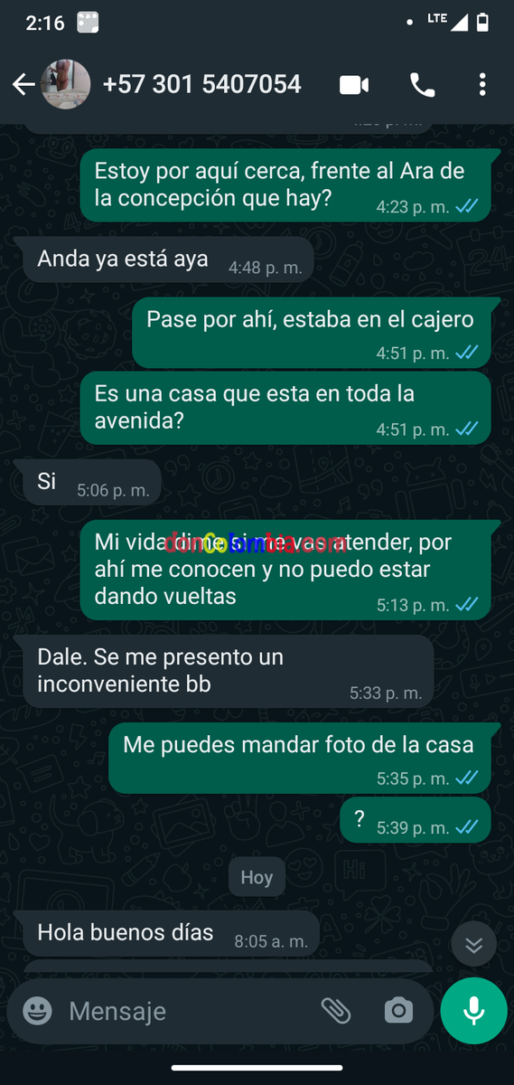 Pase 2 veces por el sitio y no contestaba el celular, uno le dice a una hora y te contesta cuando quiere o te sale con alguna excusa