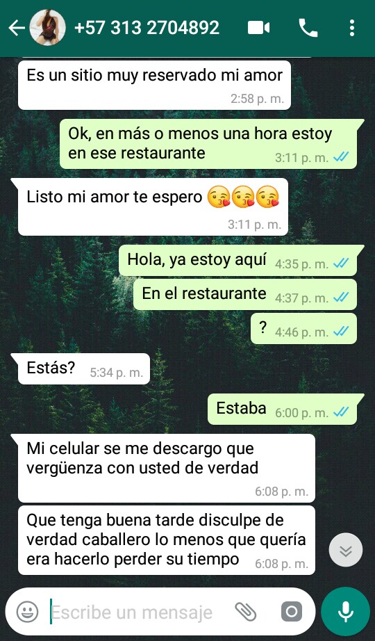 Nunca veo hilos en este foro sobre ciertos contactos que a la final resultan con una gran decepción, y me refiero a rechazarte cuando justo acabas de llegar al lugar que te indicaron para dejarte ahí esperando.