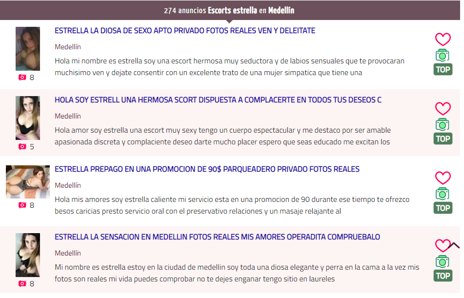 [font=Lucida Sans Unicode,Lucida Grande,sans-serif]Muy Buenas Tardes Caballeros Espero Que Se Encuentren Bien, En La Actualidad Me Encuentro Planeando Un Pequeño Viaje a Medellin En El Que Ademas De Conocer La Ciudad y Toda Su Infraestructura, También Planeo Catar Con Dos Prepagos En Especial Sofia Hernandez y Una Tal Estrella ¡¡Pero Adivinen Que!! Cuando Busco A Estrella Me Aparecen Como 10 Perfiles De Ella En Su Mayoría Falsos y Pero Aun Que Me Aparecen ¡¡Verificados!! Fuera De Eso Tiene Tres Perfiles Mas En Otras Paginas Por Lo Que De Cierta Manera Eso Me Produce Mucha Desconfianza... Les Pido Porfavor Que Si Alguno Ya Cato Con Esta Hermosa Culona Me Deje El Link De Un Perfil Verdadero y Verificado