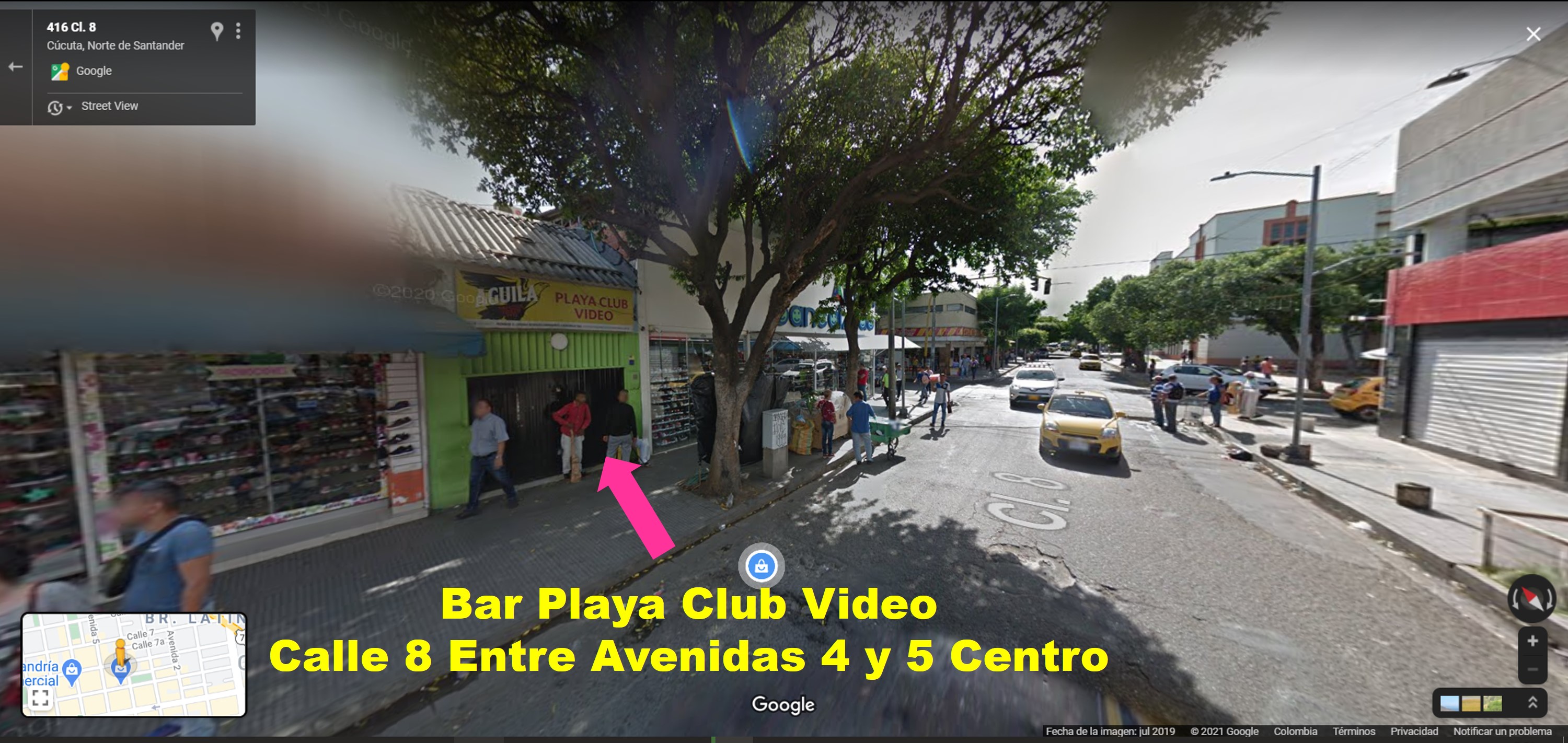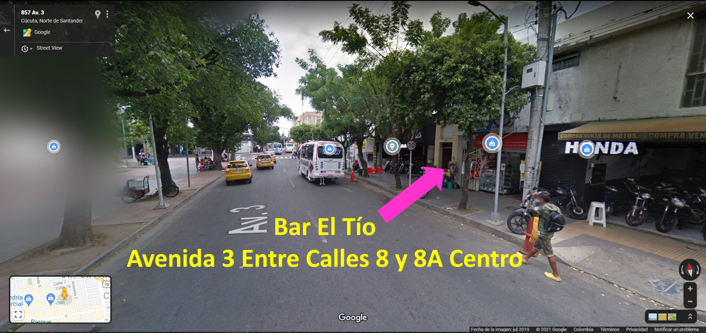 Capturas de Google Maps de varios bares de Cúcuta con sus direcciones, los cuales tienen precios asequibles por hora o media hora.