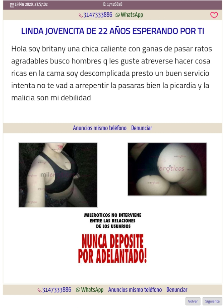 20) Teléfono (3147333886) Y link web de contacto: https://co.mileroticos.com/escorts/linda-jovencita-de-22-anos-esperando-por-ti/17426828/