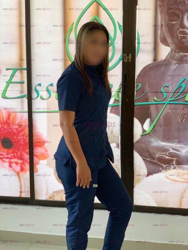 Les cuanto que estuve detrás de esta nena varias veces y no se había podido concretar, pero un buen día, la nena estaba disponible, hable con ella y aparte una cita, la nena contesta al numero que aparece abajo, bueno en fin llegue, estaba lista con un disfras de diablita por aquello del halloween, pase a la habitación me duché para refrescar e, y luego empezó el masaje esa mujer, muy bueno lo relaja a uno bastante, luego siguió el cuerpo a cuerpo, en fin, no soy muy fan del cuerpo a cuerpo pero bueno me dejé consentir, ya después del masaje siguió el oral, la nena me puso el condon y prosiguió, se lo traga todo y también chupa los testiculos, se esmera bastante, luego de eso se monta ese mujer on encima mio y empieza su rutina, había puesto un mix de reggeton y se movía al ritmo de la música, la nena tiene unos movimientos excelentes, lo único incómodo es que como es en la camilla no hay mucha libertad de movimiento. Intentamos cambiar de poses un poco hasta que me vine la primera vez, como. Me quedaba un poco de tiempo intentamos el segundo, me acarició y me lo paró de nuevo y ahí si hasta que terminé de nuevo, luego la nena me invitó a que nos bañar amos juntos, me enjabonó y me restregaba el jabón con su cuerpo muy atenta la nena y muy buen servicio.