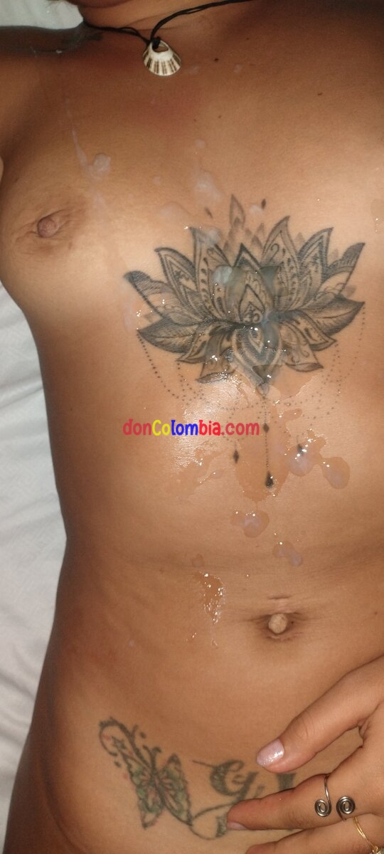 Nos hicimos no más un ratico de lado (cucharita) y yo ahí ya sentí que muy pronto me iba a venir. Entonces cambiamos a misionero pero ahí no fue mucho porque yo ya sentía que me iba a venir. Es que está vieja a lo bien se lo chupa a uno muy rico y como la vieja es MUY CHURRA con esa pinta sesentera de hippie que tiene lo cual me fascina, yo lo saqué bien rápido, me quite el condón y puuff$#@s*#$! Le bote toda la leche que tenía sobre sus tetas y estómago (ver foto adjunta). La vieja me dijo que bote harta leche. Más o menos lo mismo que me dijo Salomé. Ahí agarre un poco de papel higiénico, la limpie un poco, la vieja se cago de la risa y se fue a bañar bien rápido. Yo también me limpie y nos echamos en la cama para charlar.
