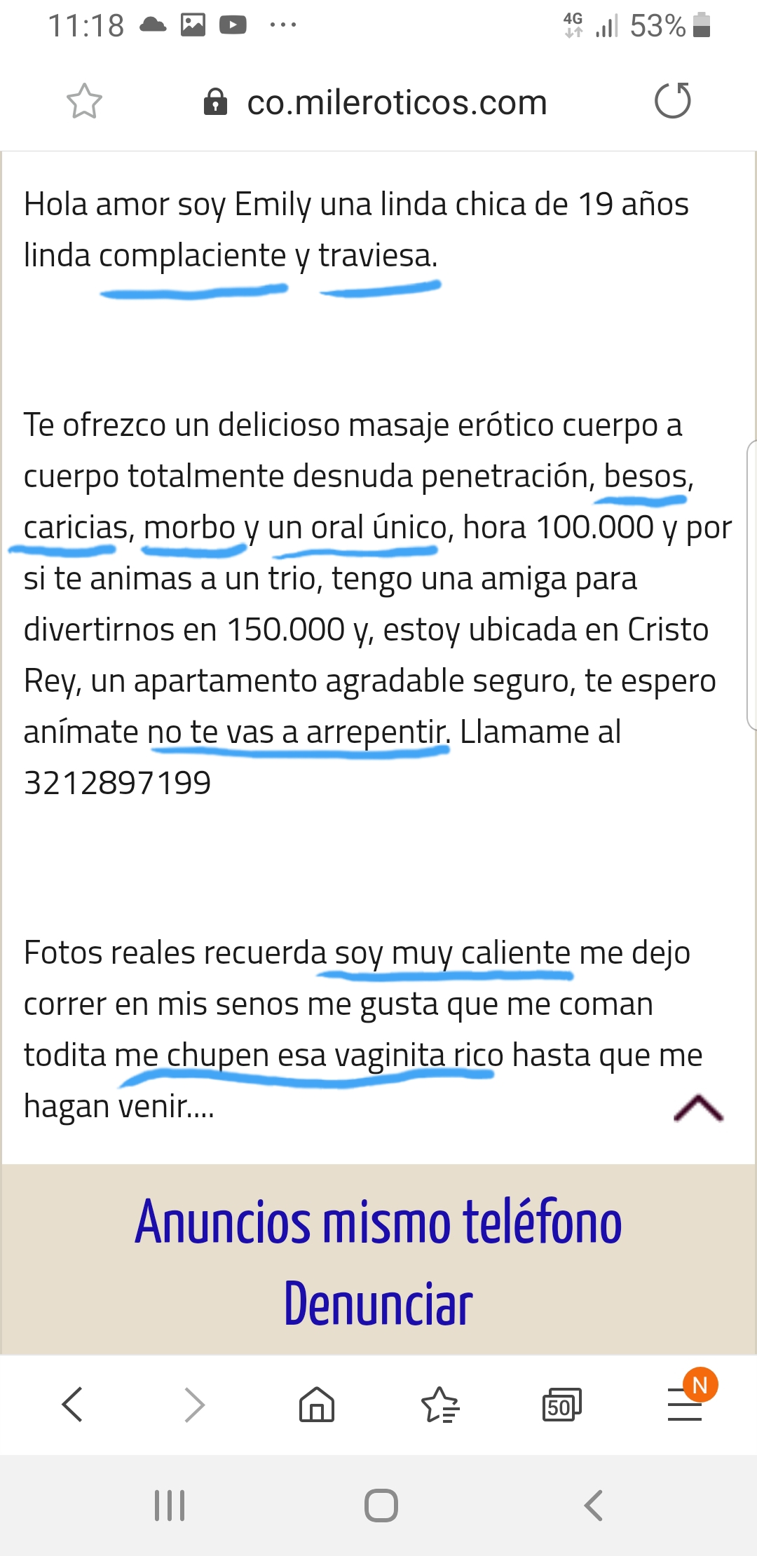 Ojo que ya no se esta promocionando como Emily, ahora se hace llamar Mariana, ya va sintiendo los efectos de su pesimo servicio.