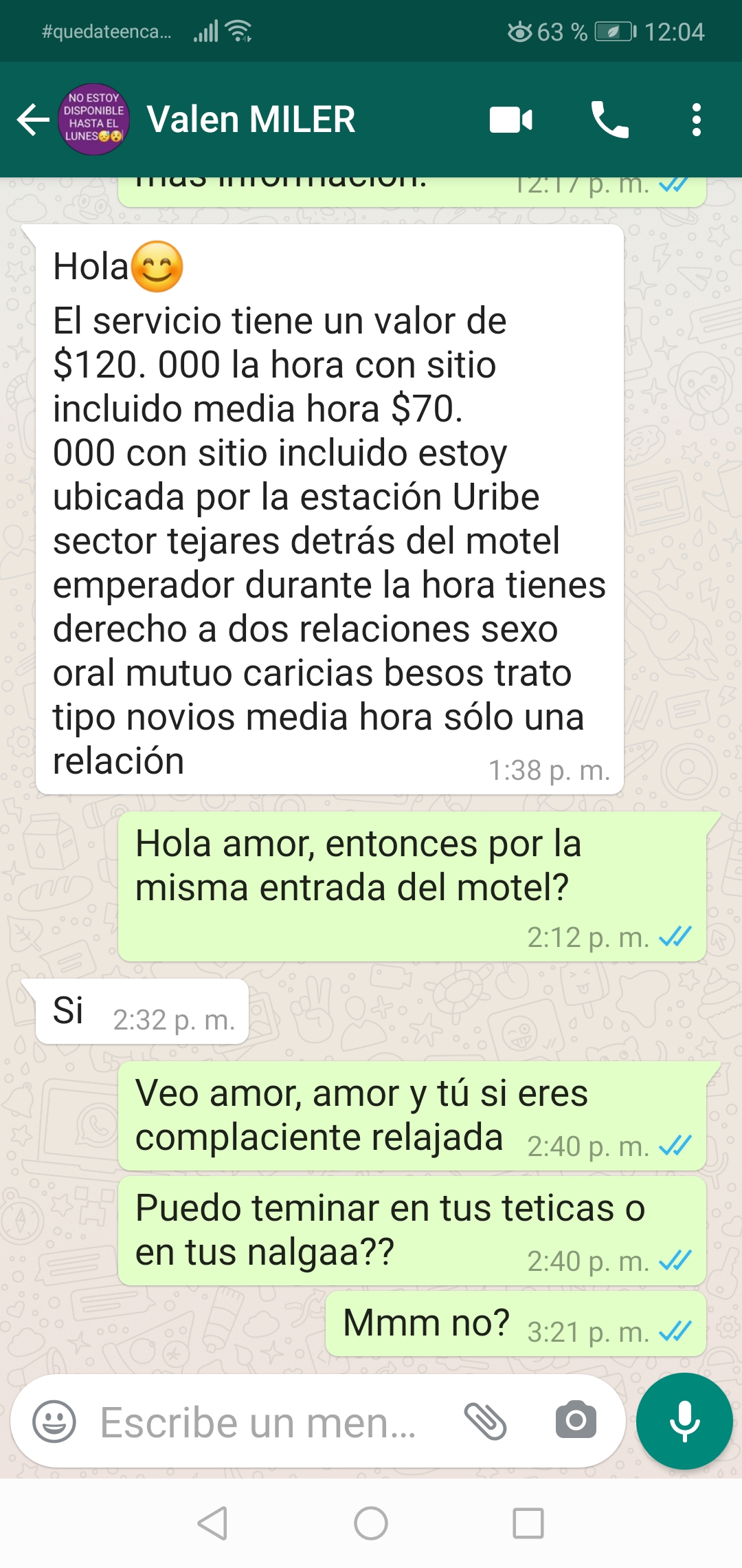 En tanto ví su publicacion en mileroticos le hable al WhatsApp y respondio rapido, cuadramos facil y me dirigí a su Apto cerca a la estacion Uribe, al llegar me recibio amablemente, estaba recien bañadita oliendo rico, hablamos un poco y luego a lo que vinimos, me desvesti, ella hizo lo mismo, su cuerpo esta mas lindo que antes, se hizo cirugia plastica de cintura, ella de por si es muy linda pero mejoro muchisimo mas, me dio unos besitos muy ricos y luego le hice oral, su vagina pulcra y deliciosa, luego la puse en misionero un rato, despues ella arriba y cabalga una maravilla, no es nada fingida, siente uno como si estuviera con la novia... despues la puse en cuantro y viendo tremendo monumento le heche todos los poderes y quede como nuevo. Es un gusto estar con esta Princesa, un servicio a años luz del que prestan las Scorts Venezolanas, definitivamente lo criollo es mas rico. La nena en ningun momento me acoso, me duche despues de terminar, me ofrecio todo lo que necesite muy amablemente, se siente uno muy bien atendido por este bebe, apenas pase todo este tema de la cuarentena vuelvo y monto esta Caballota. No le puse el 10 porque tengo que probar primero como me hace el oral, solo me falto eso, no porque ella no me lo ofreciera, sino por mi, preferi hacerle el oral a ella y ya luego me dedique a darle al peluche.