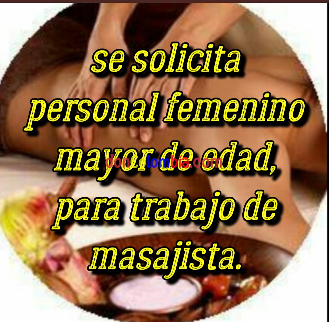 Se necesita mujer para masajes con o sin experiencia de lunes a viernes de 10 am a 6 pm mayor información a los teléfonos 3184124449