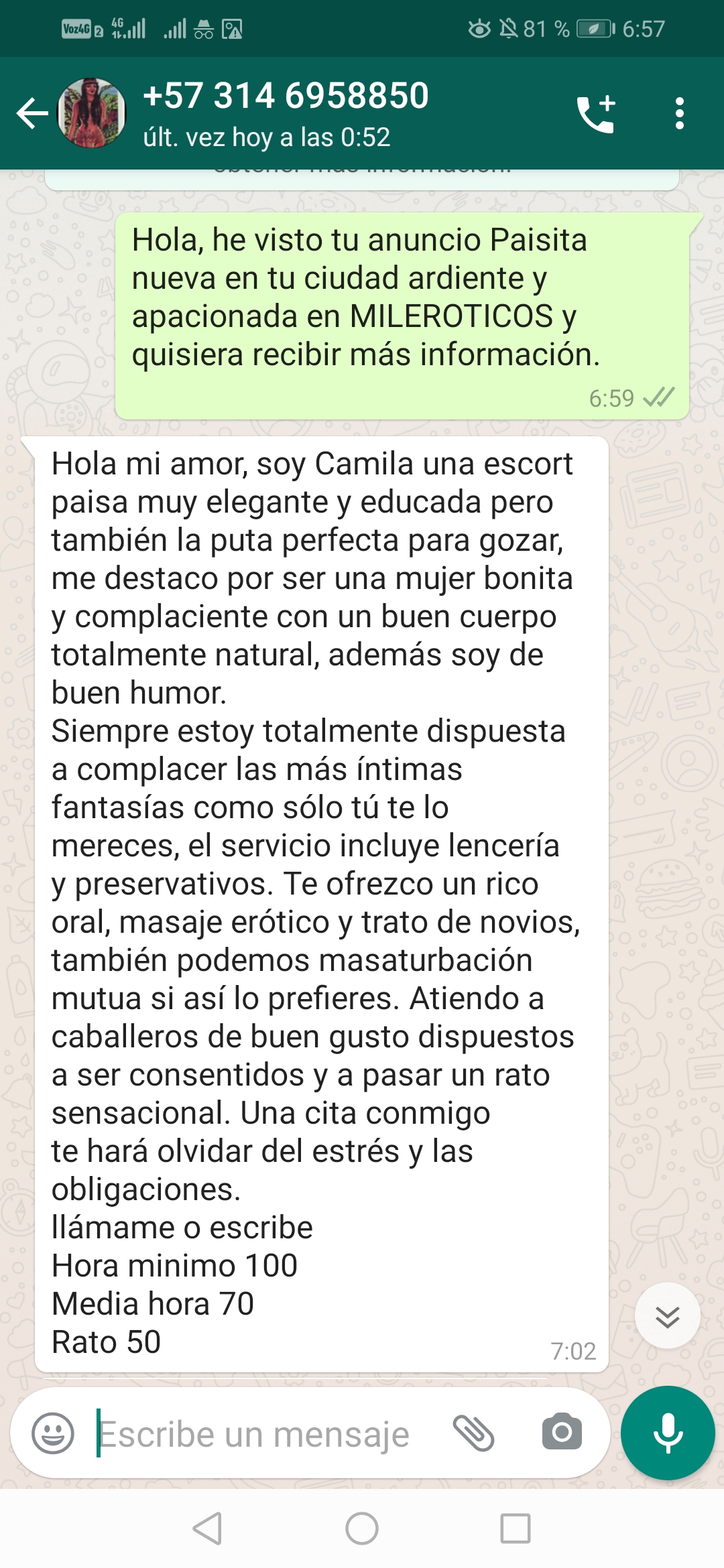 Primero está esta India que dice atender en un motel en la Kr15 con 36, y no quiero ver que estas fotos sean un fake.