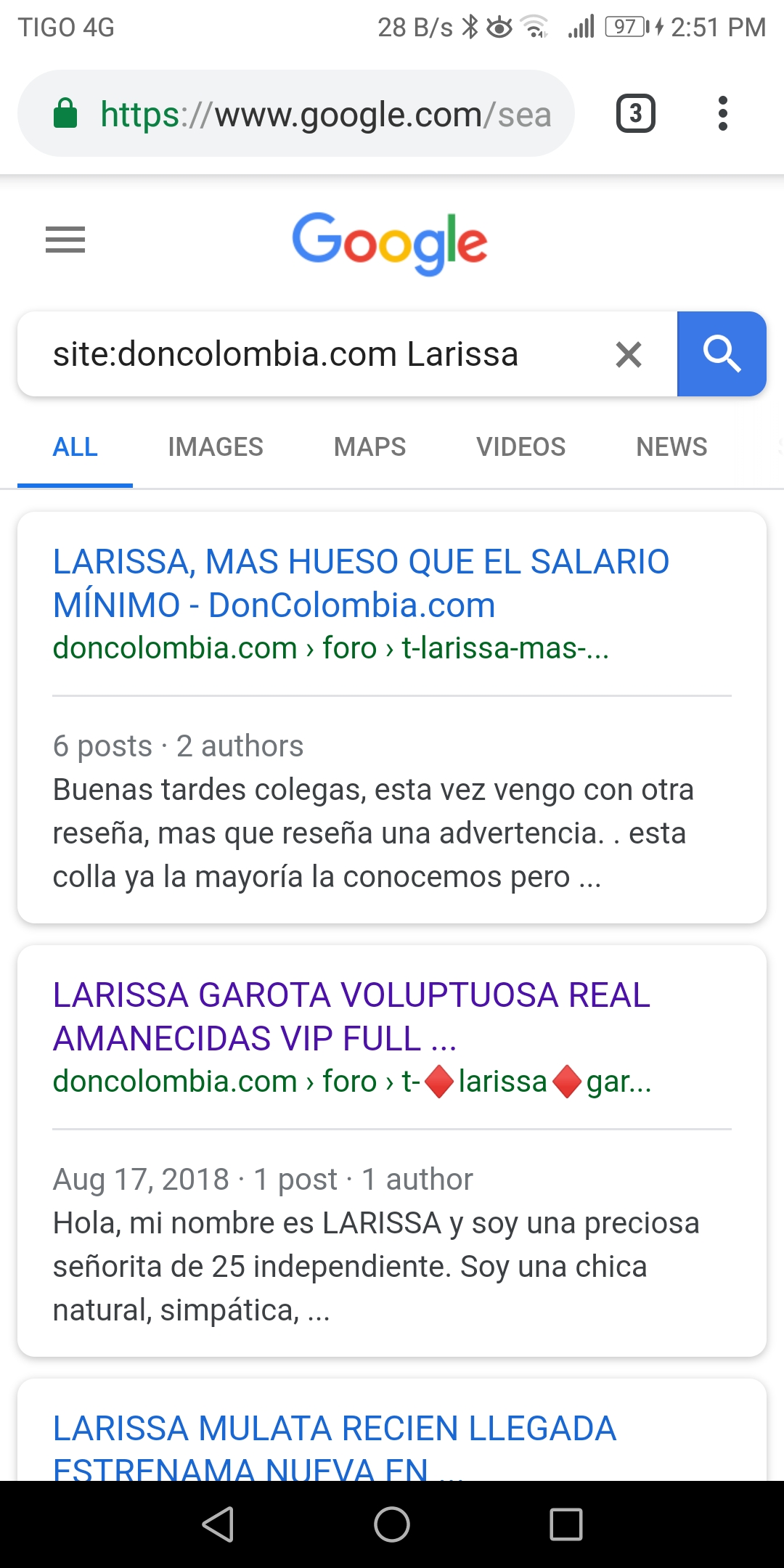 Acá está el anuncio de ella en Mileroticos para que vean de quien hablo y también dejo un screenshot del tema que sale en Google pero que al abrirlo no sale.