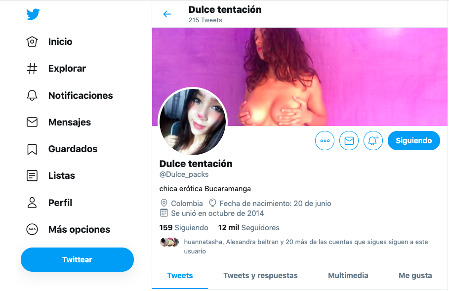 El asunto de hoy es para preguntar por una twittera cuyo pseudónimo es "Dulce Tentación" (https://twitter.com/Dulce_packs)